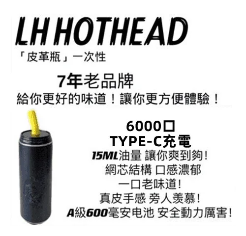 LH HOTHEAD皮革瓶電子煙可充電一次性拋棄式6000口